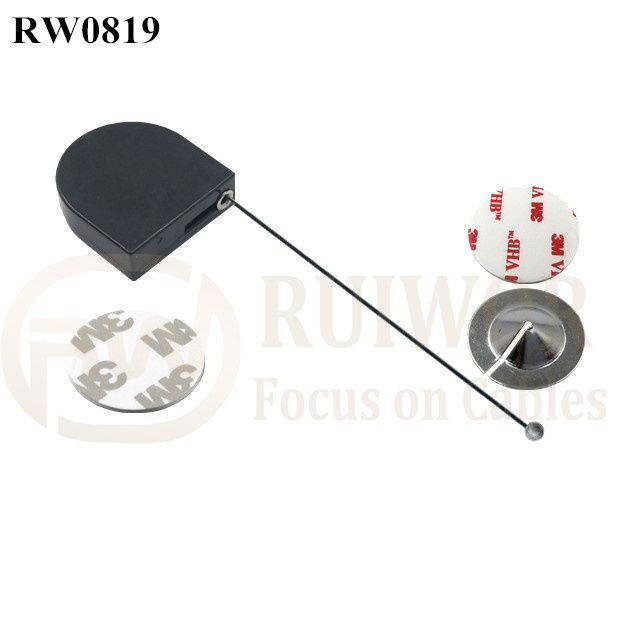 RW0819 D-Shaped Mini Retractable Tether Plus Dia 22mm Circular Sticky Metal Plate