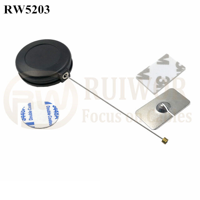 RW5203 Round Anti Theft Retractor Plus 35X22mm Rectangular Adhesive Metal Plate